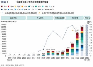 分布式光伏不仅是我国“双碳”目标下新型电力系统建设中的坚实支撑,也是我国满足快速增长用电需求的关键方式。自2021年底以来,该板块累计装机年平均增长率高达49%,显著高于集中式光伏与风电。截至2025年9月底,分布式光伏累计装机容量已突破5亿千瓦,在光伏总装机及新能源装机中占比分别达到45%和约30%。同时,分布式光伏因靠近用户端,可直接贡献于工业、建筑、交通等重点领域的绿电利用,是推动能源消费绿色化低碳化、提高终端用能清洁电气化的有力抓手。